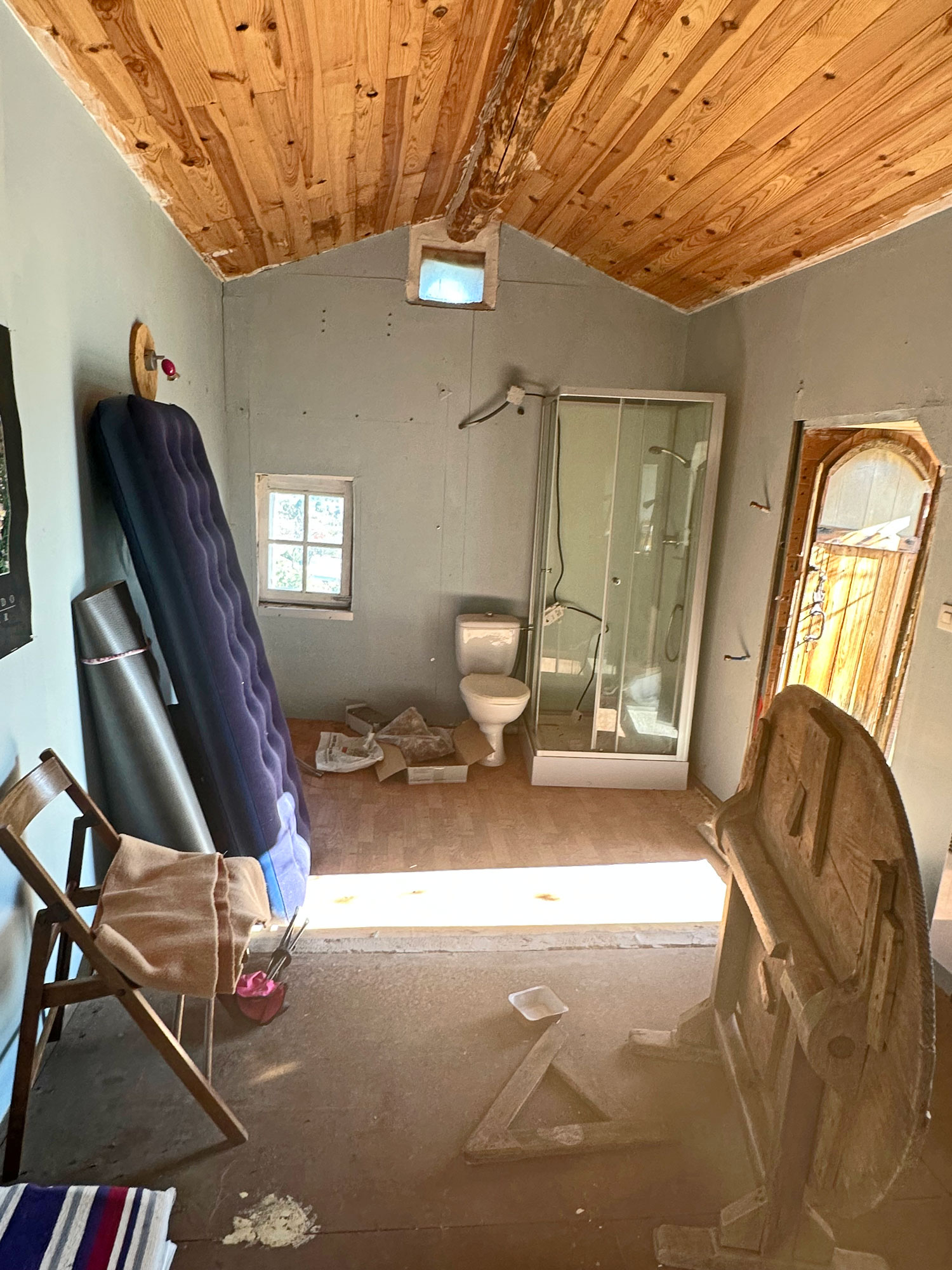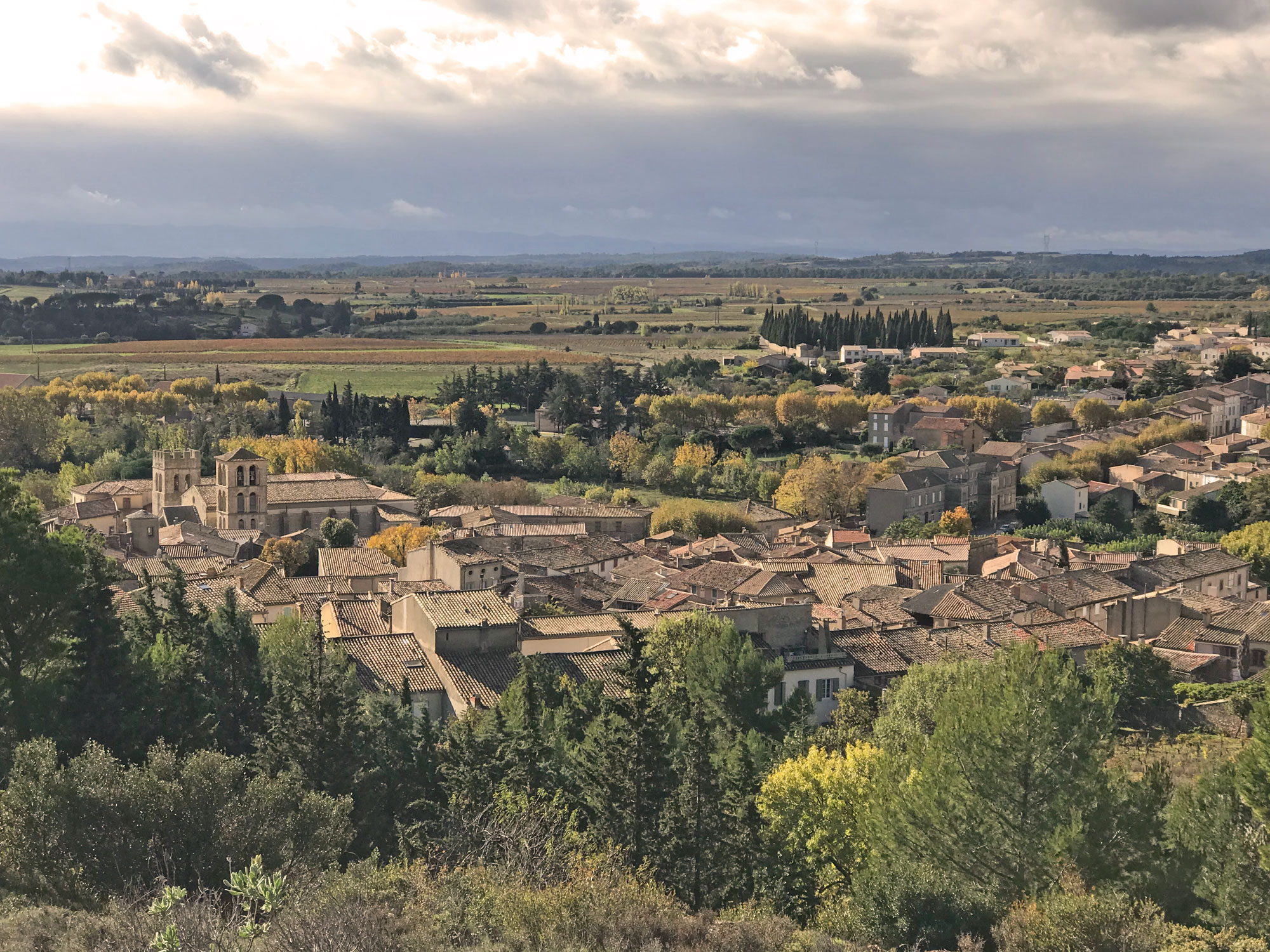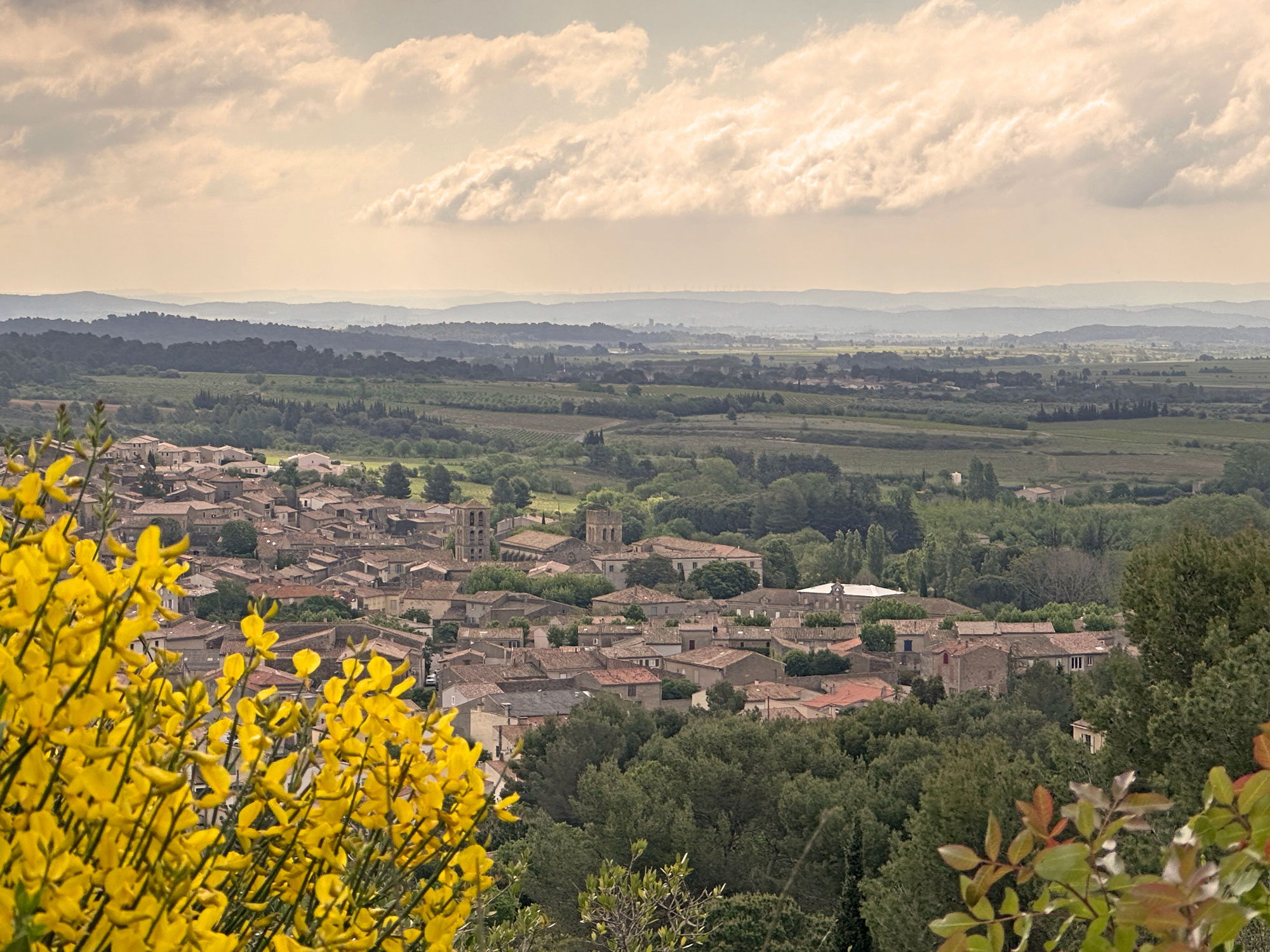 Magnifique terrain constructible offrant une vue imprenable sur les hauteurs de Caunes-Minervois, avec une cabane en pierre dessus.
